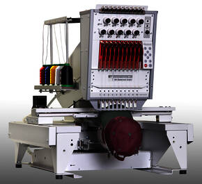 12 Nadeln, rasante 1500 Stiche pro Minute und ein großes Stickfeld von 60 x 38 cm erlauben höchste Produktivität. Auch größere Losgrößen und große Muster lassen sich mit dieser Stickmaschine rationell bearbeiten.
